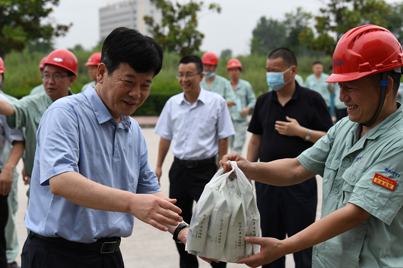 每到一處,公司領(lǐng)導(dǎo)都親手將防暑降溫物品送到干部職工手中,感謝他們的辛苦付出。同時,王文生一行還走進生產(chǎn)現(xiàn)場看望職工,并聽取了單位主管領(lǐng)導(dǎo)的工作匯報。
