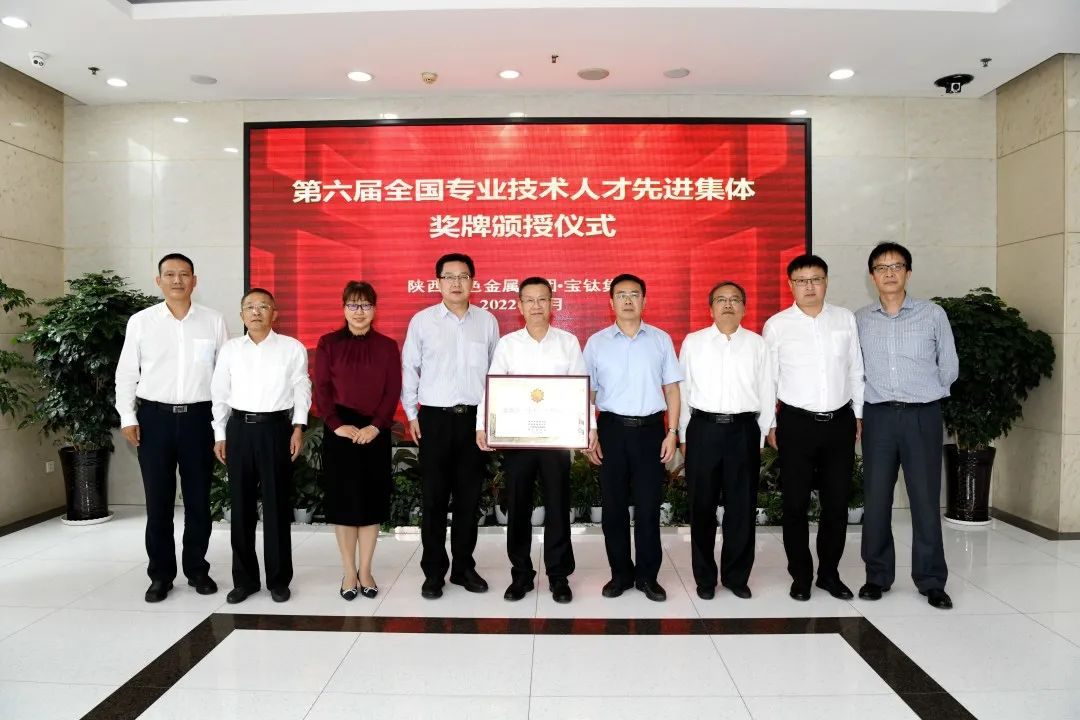 9月27日,受人力資源和社會(huì)保障部委托,陜西省人力資源和社會(huì)保障廳在陜西有色金屬集團(tuán)舉行了第六屆全國(guó)杰出專業(yè)技術(shù)人才先進(jìn)集體獎(jiǎng)牌頒授儀式,寶鈦新材料研發(fā)創(chuàng)新團(tuán)隊(duì)代表領(lǐng)獎(jiǎng)。省人社廳、省國(guó)資委相關(guān)部門(mén)負(fù)責(zé)人到會(huì)頒獎(jiǎng),陜西有色金屬集團(tuán)黨委副書(shū)記郭仕龍參加會(huì)議,寶鈦集團(tuán)黨委副書(shū)記、總經(jīng)理雷讓岐代表寶鈦新材料研發(fā)創(chuàng)新團(tuán)隊(duì)領(lǐng)獎(jiǎng)并作表態(tài)發(fā)言,陜西有色金屬集團(tuán)總經(jīng)理助理、黨委組織部部長(zhǎng)孟鋼主持會(huì)議。