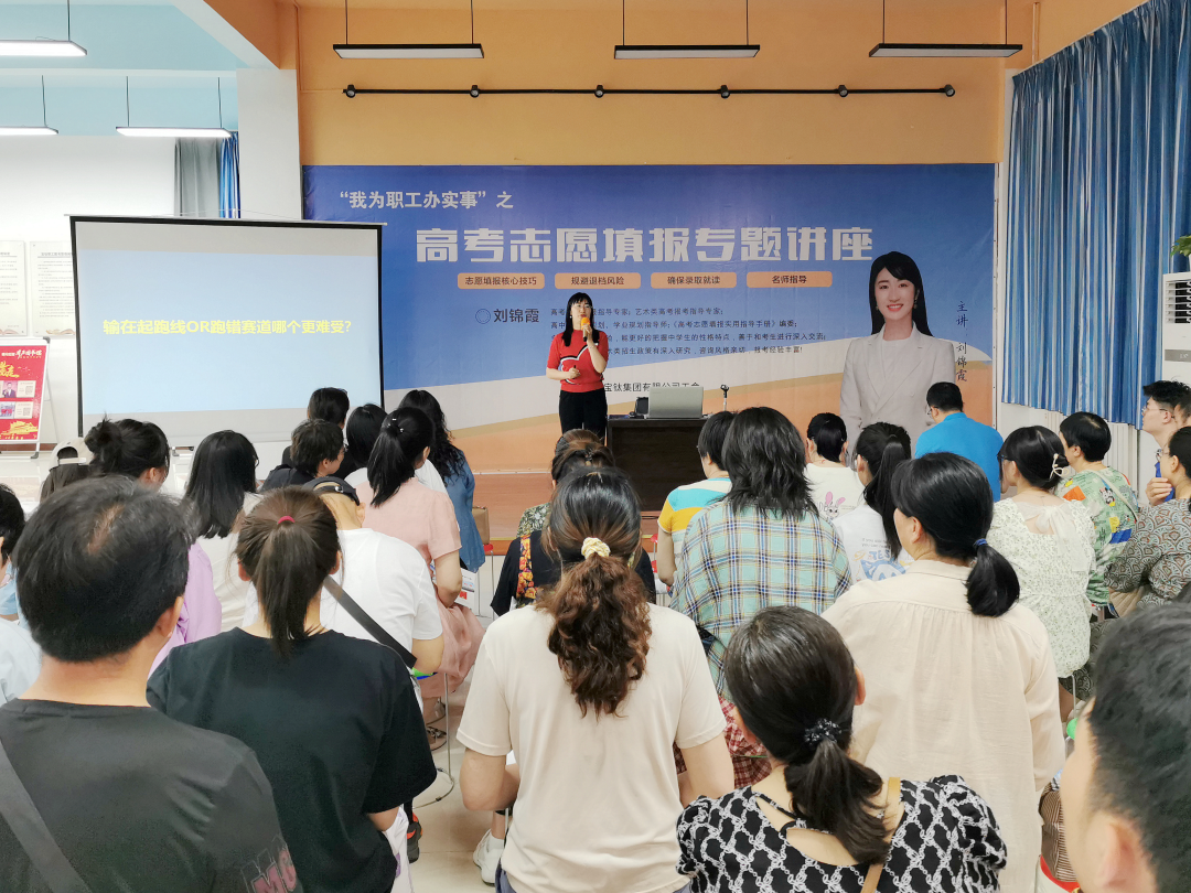 講座前,公司工會副主席田周平介紹了來自“門道”的3名專業(yè)指導老師,并預祝寶鈦學子學業(yè)有成、金榜題名。隨后,“門道”高考志愿填報首席咨詢專家劉錦霞老師,從陜西省高考最新招生政策及高校解讀分析、填報志愿方法與技巧、模擬梯度志愿填報及平行志愿填報的錄取流程等三方面進行了詳細的分析講解,并對家長最關(guān)心的幾個問題進行了深入淺出的指導和答疑解惑。