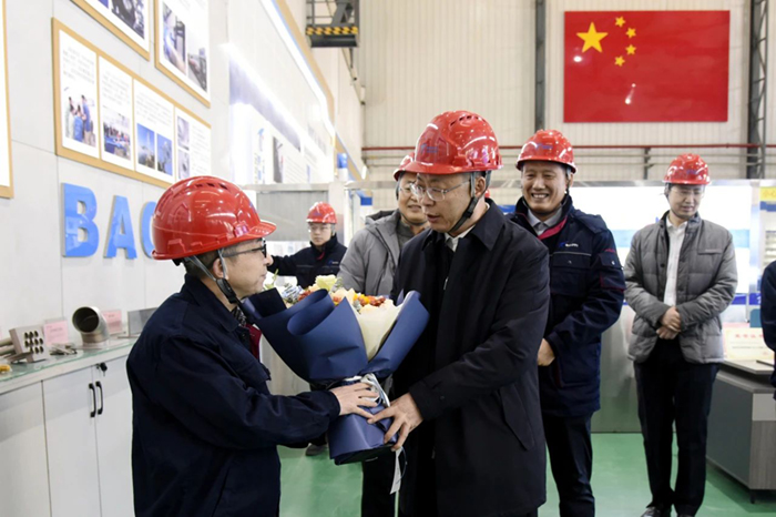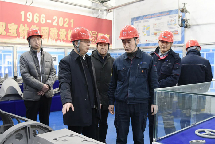 1月21日上午,陜西有色金屬集團(tuán)黨委書記、董事長吳群英帶隊到寶鈦集團(tuán)開展春節(jié)慰問及調(diào)研檢查。寶鈦集團(tuán)黨委書記、董事長、總經(jīng)理王儉,黨委副書記、工會主席賀治民陪同。