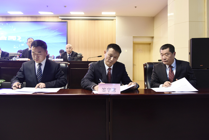寶鈦集團(tuán)行政方首席代表王儉,寶鈦股份行政方代表陳戰(zhàn)乾,與職工方首席代表賀治民在新一輪《寶鈦集團(tuán)集體合同》和《寶鈦股份集體合同》上簽字。
