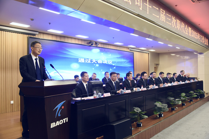 經(jīng)過(guò)前期的預(yù)備會(huì)議,1月23日上午,寶鈦集團(tuán)十二屆三次職代會(huì)暨2025年工作會(huì)議順利召開。集團(tuán)黨委書記、董事長(zhǎng)、總經(jīng)理王儉作工作報(bào)告,黨委副書記、工會(huì)主席賀治民主持會(huì)議,黨委委員、副總經(jīng)理何聯(lián)國(guó)傳達(dá)上級(jí)會(huì)議精神。