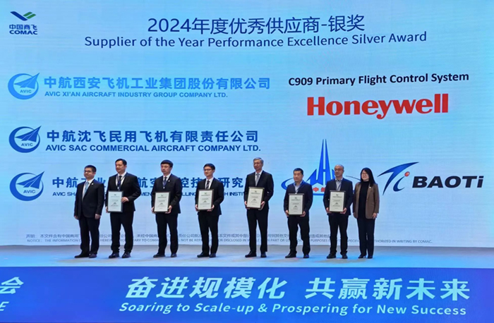 3月20日,中國商飛在西安召開2025年供應(yīng)商大會,來自全球229家供應(yīng)商的800余名代表共聚一堂,共話大飛機事業(yè)發(fā)展新篇章。會上,寶鈦股份憑借在鈦材研發(fā)、生產(chǎn)及供應(yīng)鏈保障中的卓越表現(xiàn),榮獲中國商飛“2024年度優(yōu)秀供應(yīng)商銀獎”,成為金屬材料領(lǐng)域獲此殊榮的少數(shù)企業(yè)之一。寶鈦股份總經(jīng)理陳戰(zhàn)乾代表企業(yè)登臺領(lǐng)獎。
