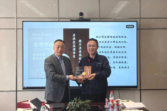 憑借卓越的產(chǎn)品質量、穩(wěn)定的供貨能力及高效的服務水平,寶鈦股份在山東豪邁集團兩年一度、覆蓋上萬家供應商的評選中脫穎而出,首次獲評“2024年度優(yōu)秀供應商”,這標志著雙方合作邁上了新高度。未來,寶鈦股份與山東豪邁集團將攜手在高端裝備制造、綠色供應鏈等領域探索創(chuàng)新,共促高質量發(fā)展。