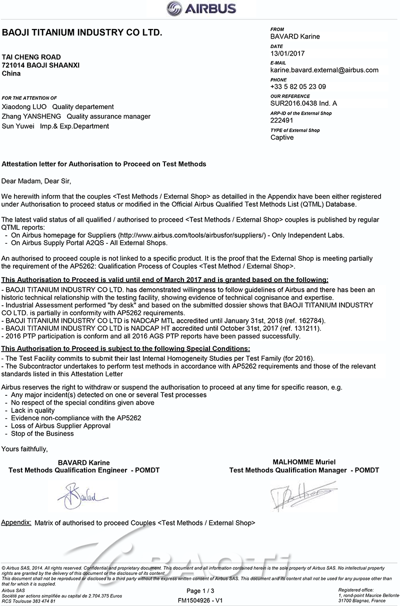 寶鈦集團(tuán)有限公司 地址:陜西省寶雞市高新大道88號(hào) 郵政編碼:721014 郵箱:gsb@baoti.com