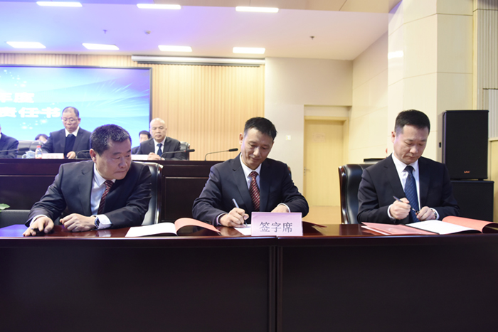 短暫休會(huì)后,大會(huì)舉行了經(jīng)營(yíng)業(yè)績(jī)目標(biāo)責(zé)任書、安全環(huán)保消防責(zé)任書、集體合同簽訂儀式。王儉與寶鈦股份總經(jīng)理陳戰(zhàn)乾、寶色股份總經(jīng)理劉鴻彥,簽訂了2025年度經(jīng)營(yíng)業(yè)績(jī)目標(biāo)責(zé)任書;與裝備科技公司經(jīng)理武建文、動(dòng)力公司經(jīng)理?xiàng)钐N(yùn)鴻,簽訂了2025年度經(jīng)營(yíng)業(yè)績(jī)目標(biāo)責(zé)任書;與寶鈦股份總經(jīng)理陳戰(zhàn)乾、寶色股份董事長(zhǎng)薛凱,簽訂了安全環(huán)保消防責(zé)任書。集團(tuán)副總經(jīng)理何書林與寬厚板公司經(jīng)理郭有智、生產(chǎn)安全環(huán)保部主任李振華,簽訂了安全環(huán)保消防責(zé)任書。